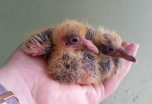 If you find a healthy, uninjured baby pigeon out of the nest and you can see and get to the nest, you can return it there for the parents to care for. Don’t worry, they won’t be upset by you handling the baby. Observe to make sure the parents return and continue caring for the baby.